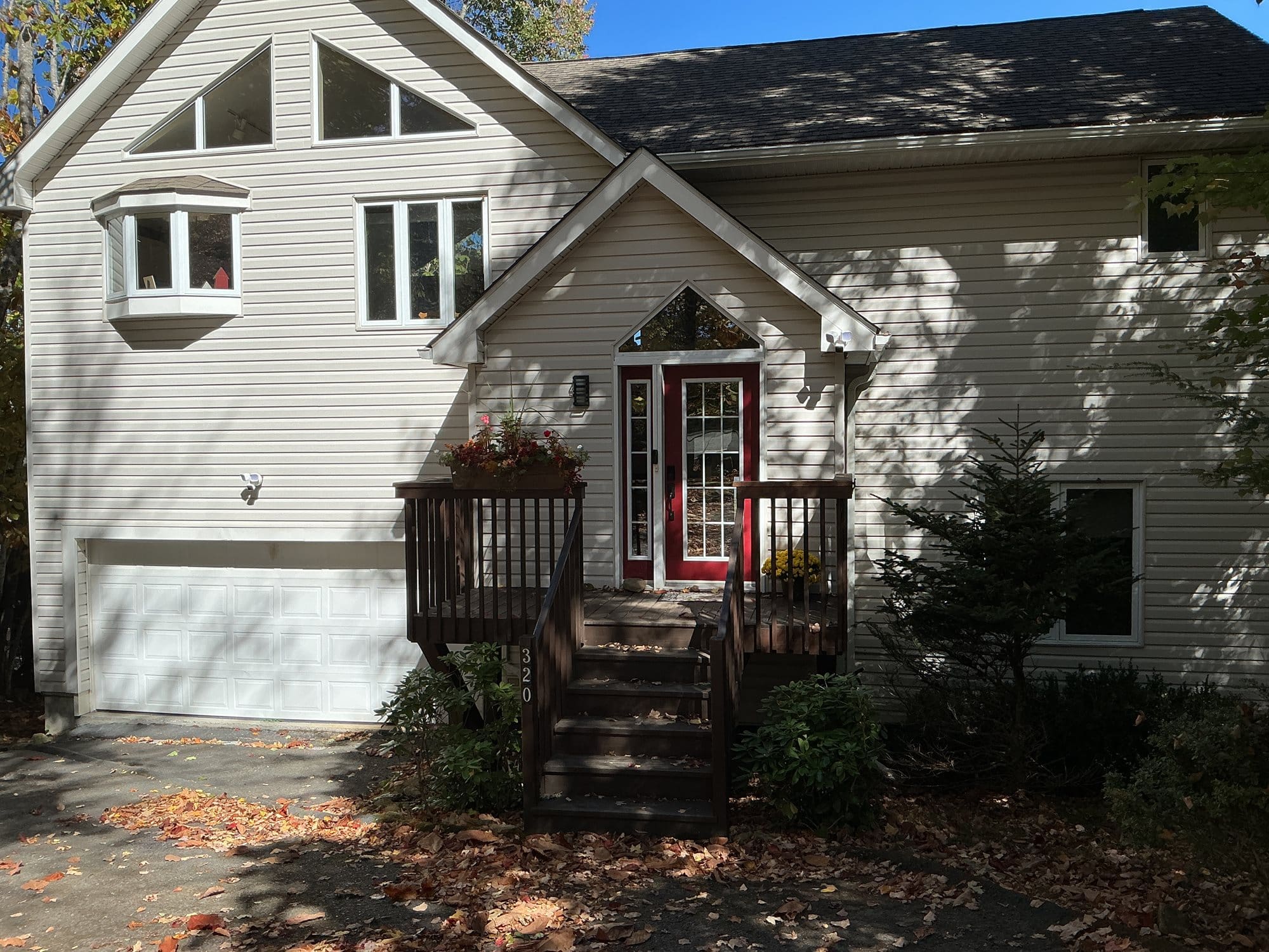 Here’s the layout of the house: -Main Level- Master Bedroom: – Full Bath – King Bed and sliding glass door out onto the deck Hall: – 1/2 bath -Lower Level- – 2 BR with Queen Beds, closets, and long-range view from 1 bedroom. The other bedroom has a view of the front yard. – Full bath – Laundry Room with ironing board and iron – Den with couch, chair, desk and chair, and deck with bench-seat for 2 looking out on long-range view – 2 Twin air mattresses with blankets, linens, and pillows located in the laundry room.